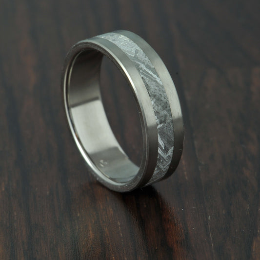 Step to the next level with Pyxis! Three visible sections on the surface. Titanium, meteorite, and titanium again. On of our biggest masterpieces, the Pyxis rings are truly complicated items. If you wear one, people will see the lot of work in it for first look!